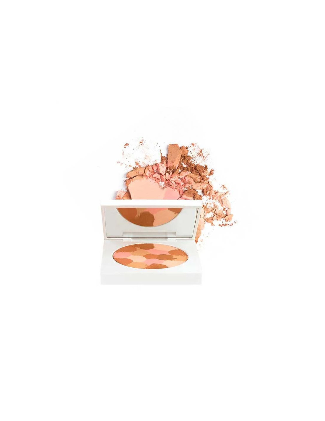 Maquillaje facial en polvo para proporcionar un favorecedor tono dorados, sin obstruir los poros.