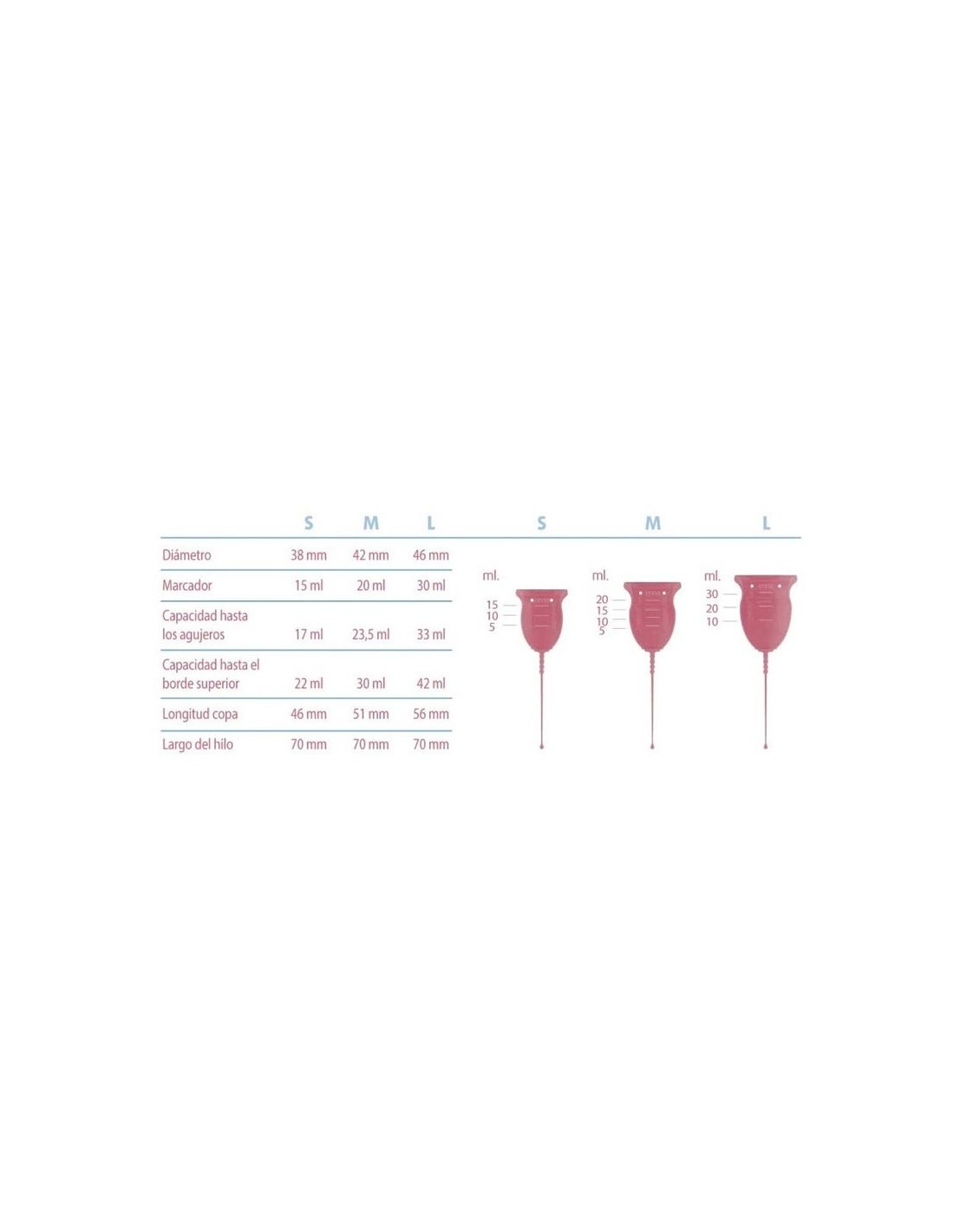 Copa mentrual con aplicador, hilo para facilitar la extracción y más capacidad.