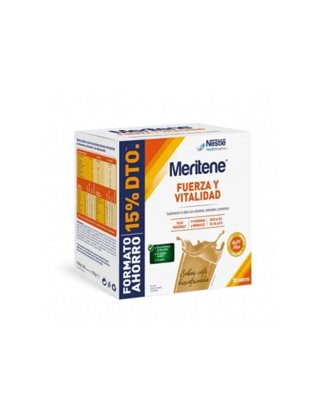Meritene Fuerza y Vitalidad Sabor Café Descafeinado 30 Sobres.