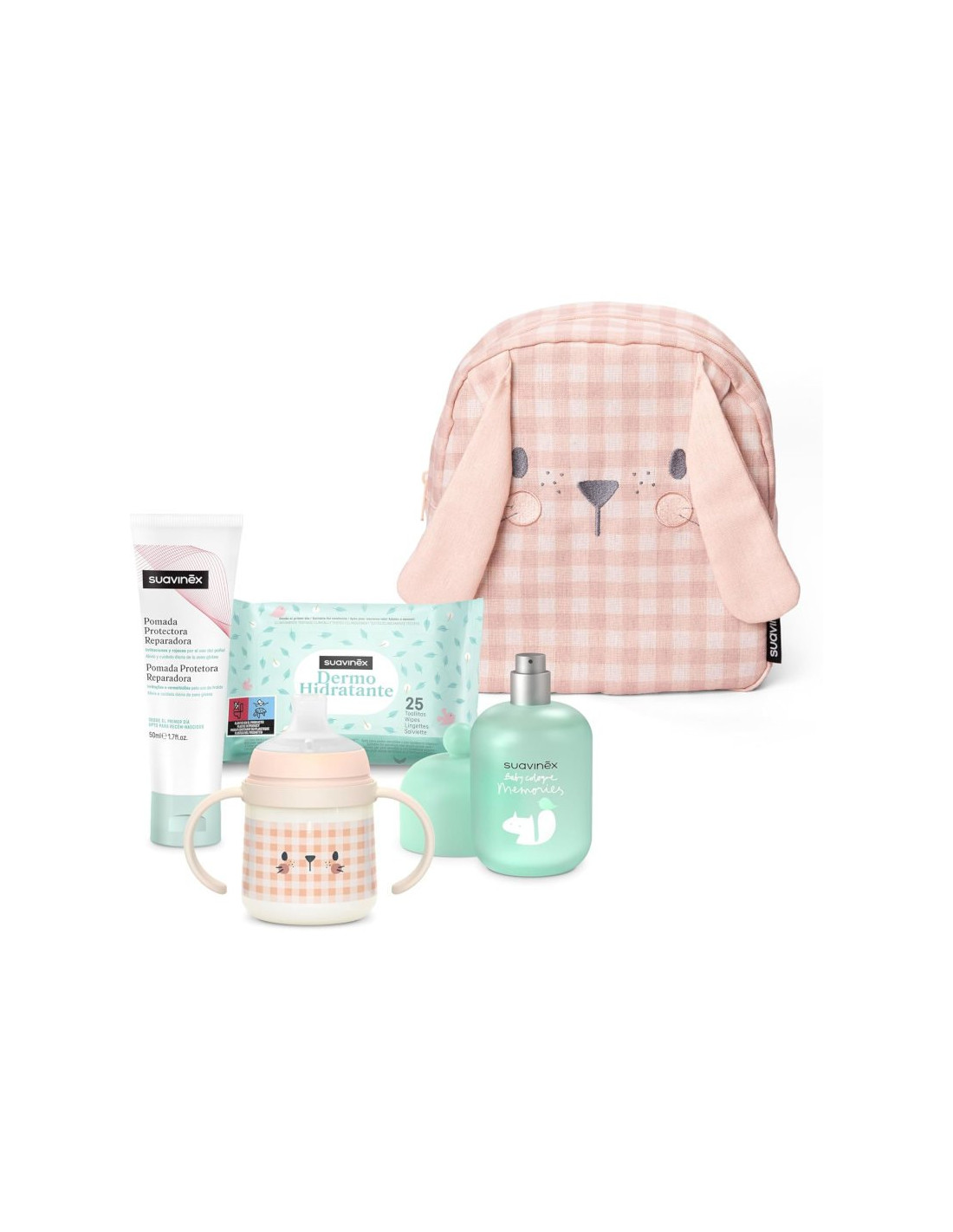 Suavinex Mochila Guardería para Bebés Conejo Rosa es un completo set de cuidado personal que incluye 4 productos esenciales, convirtiéndose en un regalo ideal para los más pequeños.