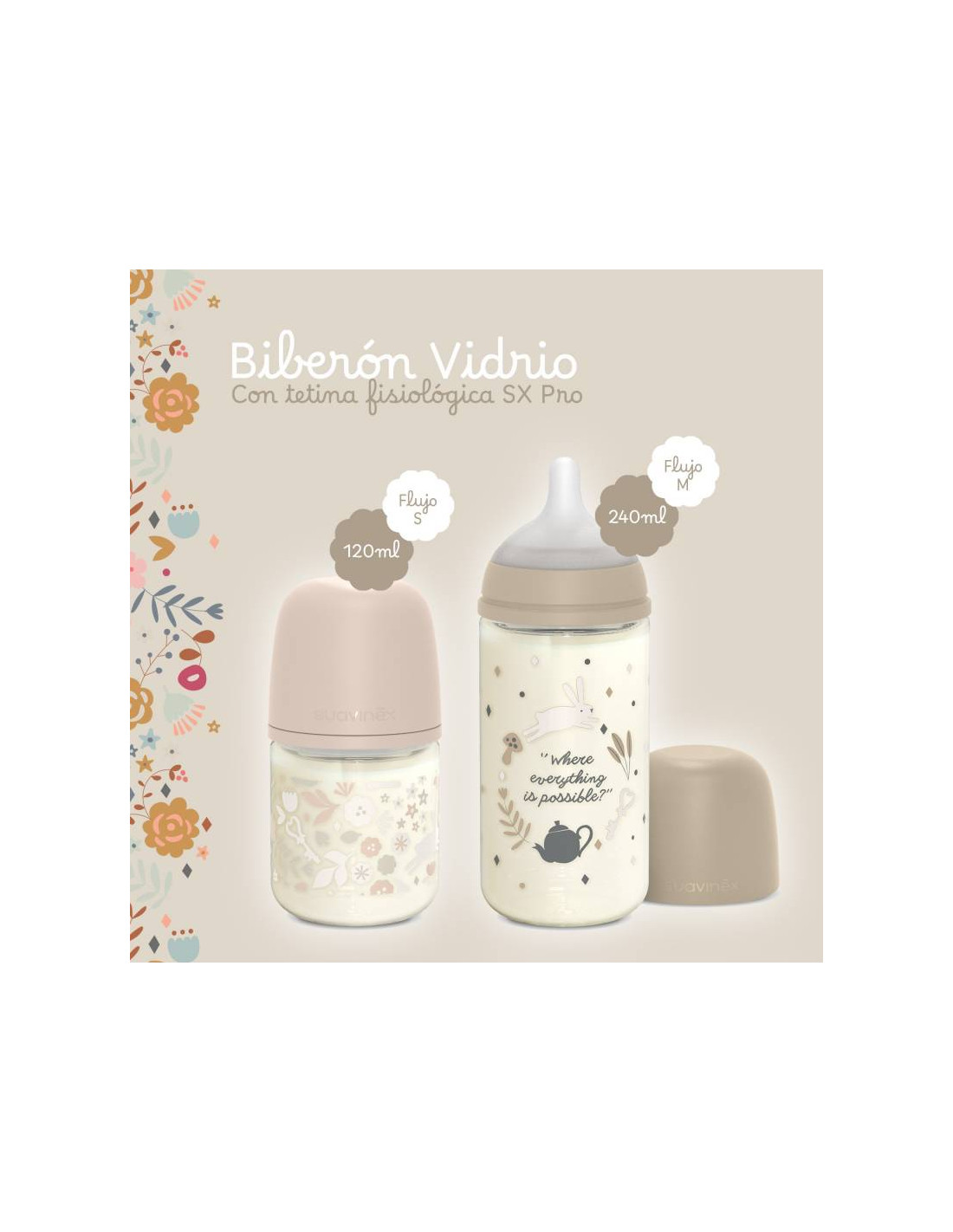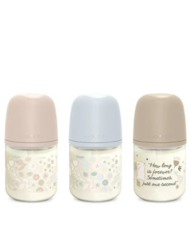 Permite adaptarse al ritmo de succión del bebé tan sólo girando el biberón. Coloca justo debajo de su nariz la señal que indica mayor o menor salida de líquido y gira el biberón para cambiar de posición durante la toma: