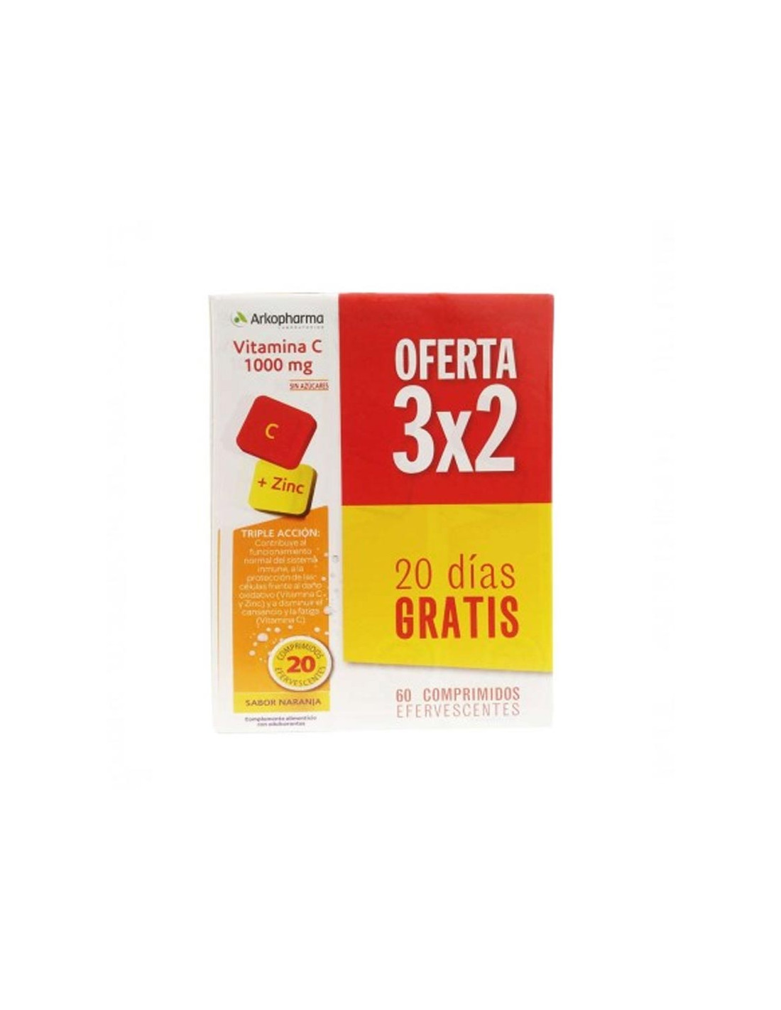 Complemento alimenticio a base de vitamina C y el zinc que contribuyen al funcionamiento normal del sistema inmunitario y a la protección de las células frente al daño oxidativo y ayuda a disminuir el cansancio y la fatiga.
